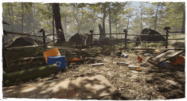 Forests, it's not just trees, leaves and animals, it's a ton of trash left by people. You will find more than 150 different trash here. Sometimes you will be surprised what you can find in the forest. Remember that everything has to be sorted. You have special trash garbage cans for this. Some skills as well as large garbage bags will be helpful in cleaning up.