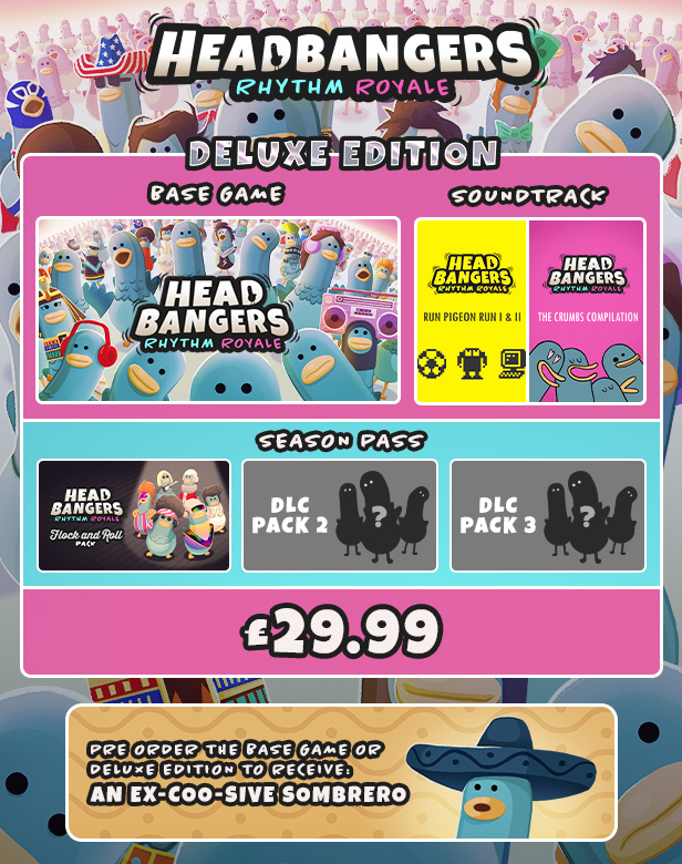 Well, think no more! Headbangers puts you and 29 others into the eye of the Pigeon while you battle it out in rhythmic challenges to find out who is the ultimate Master Headbanger.