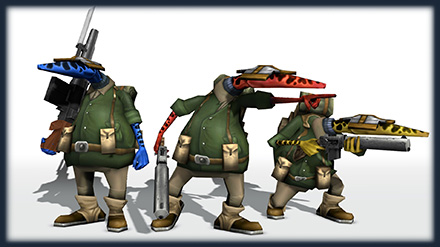 Command cavalry to sweep the enemy's flanks. Send Baeliog armored tractors forward to shatter hardened defenses. Your rhyflers are armed with weapons ranging from the humble Bogen rifle to heavy-automatic shotguns. Rely on your stalwart officers to keep up your troop's morale and to call in deadly airstrikes. But above all, preserve the honor of your cause as you wage the Battle for Gate 18!