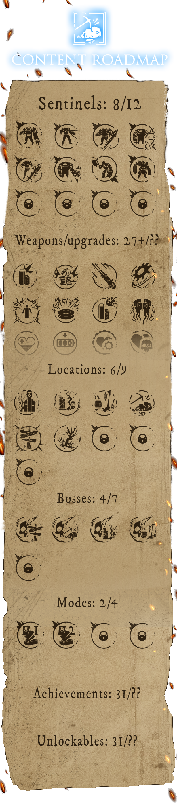The roadmap outlining the existing and the future content you can expect to find in the game: